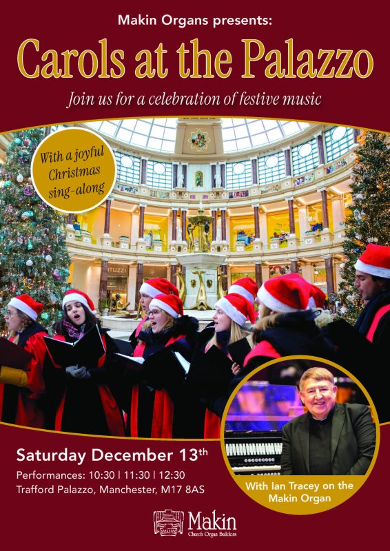 Carols will be sung by members of the Kantos Chamber Choir. Organ accompaniment and organ pieces will be played by Professor Ian Tracey playing the Makin Derwent 4-68 organ which he designed.