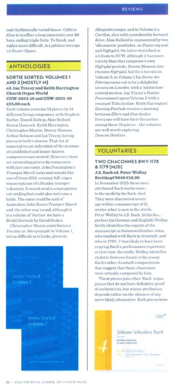 We are delighted with the nice review or Sortie Sorted Volume 1 & 2 in Church Music Quarterly. You can buy copues from here priced at £25.00 each.